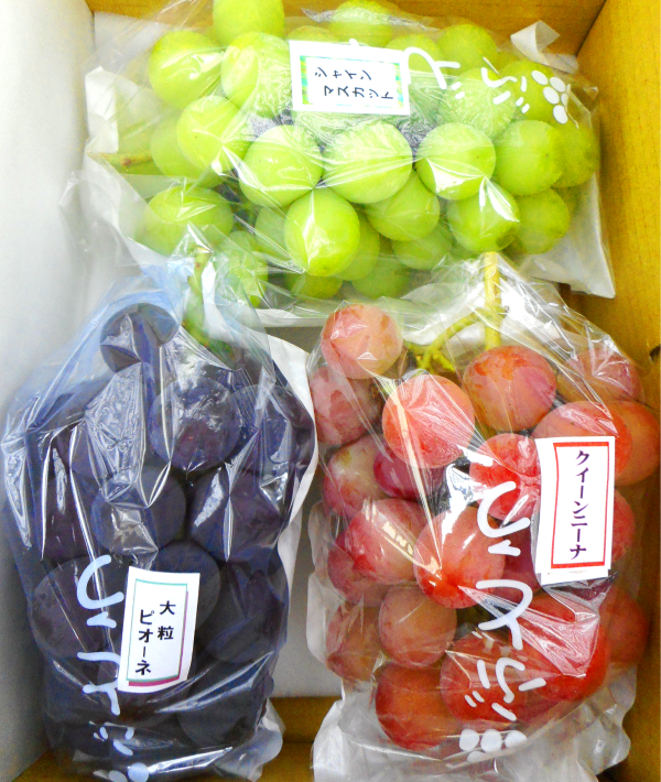 ぶどうの種類は、お客様のお好みに添って、詰め合わせをしています。