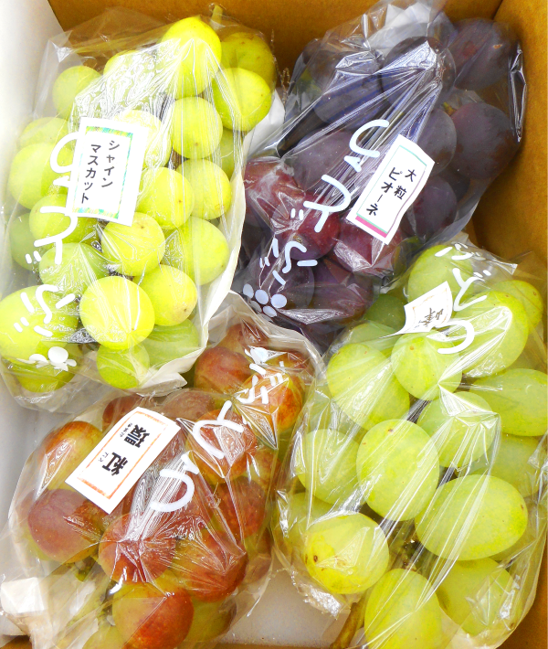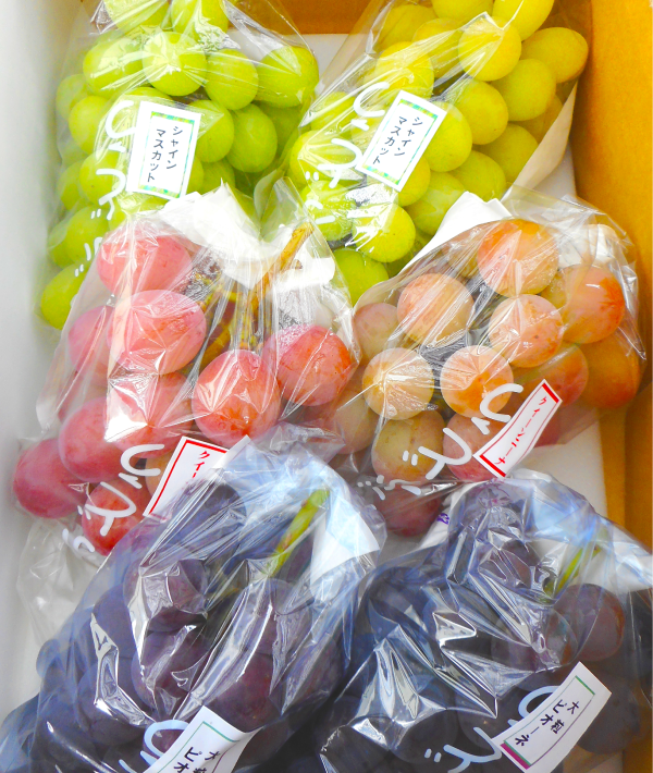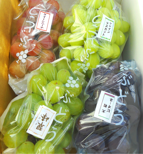 ぶどうの種類は、お客様のお好みに添って、詰め合わせをしています。
